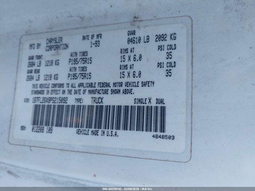 VIN: 1B7FL26X8PS215092