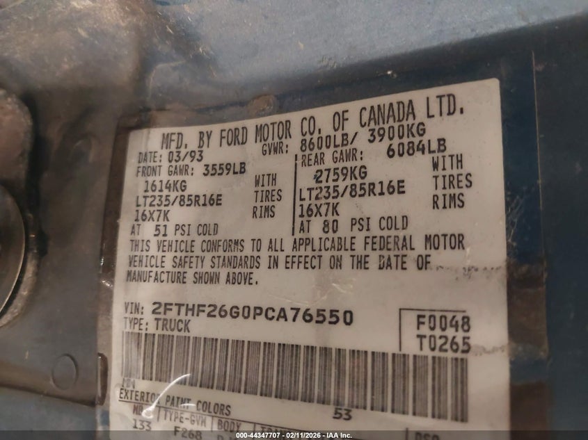 VIN: 2FTHF26G0PCA76550