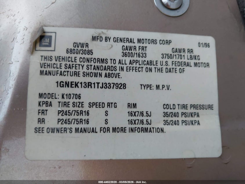 VIN: 1GNEK13R1TJ337928