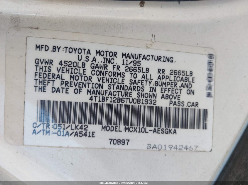 VIN: 4T1BF12B6TU081932