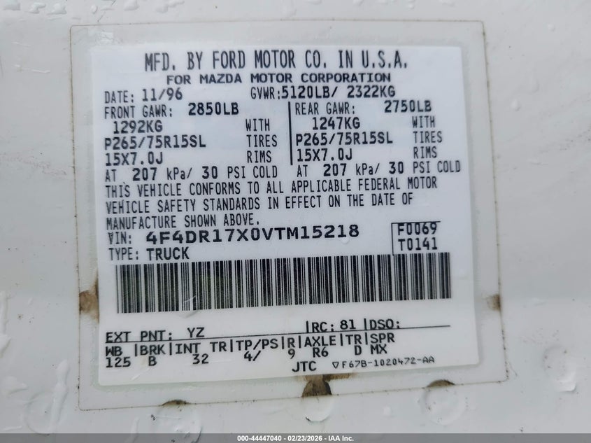 VIN: 4F4DR17X0VTM15218