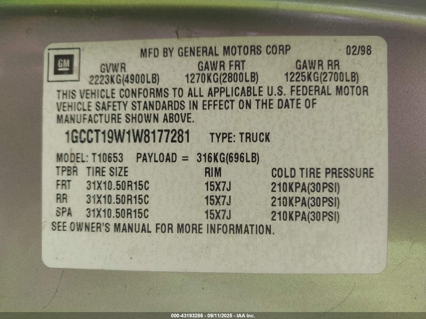 VIN: 1GCCT19W1W8177281