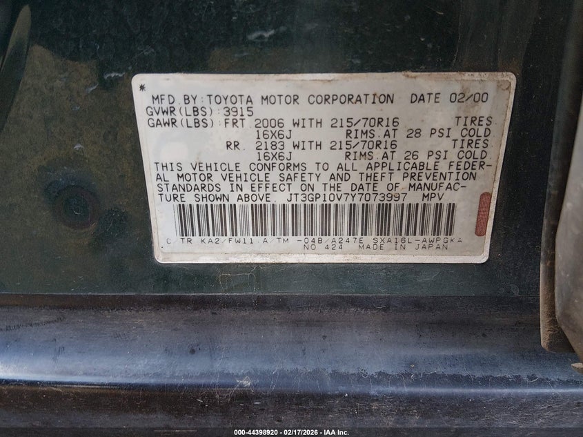 VIN: JT3GP10V7Y7073997