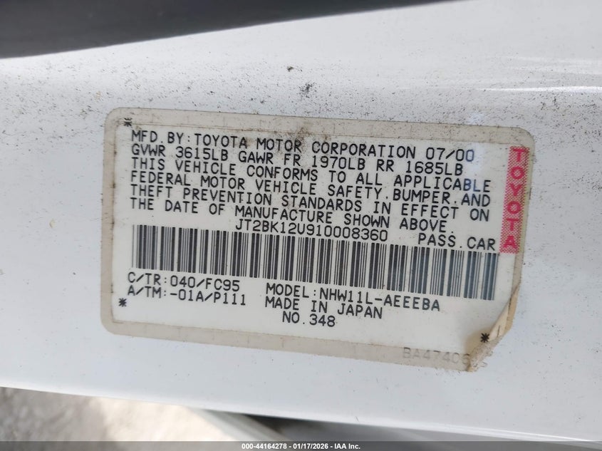 VIN: JT2BK12U910008360