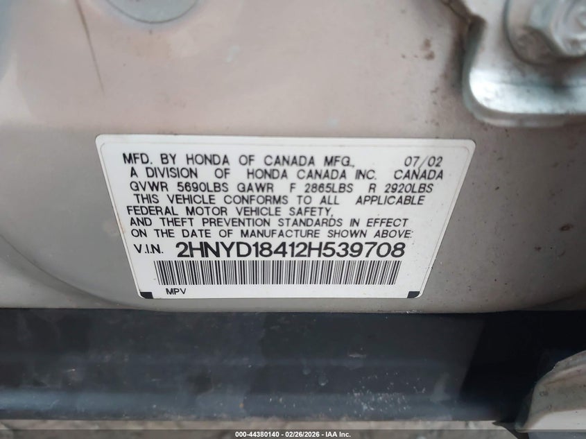 VIN: 2HNYD18412H539708