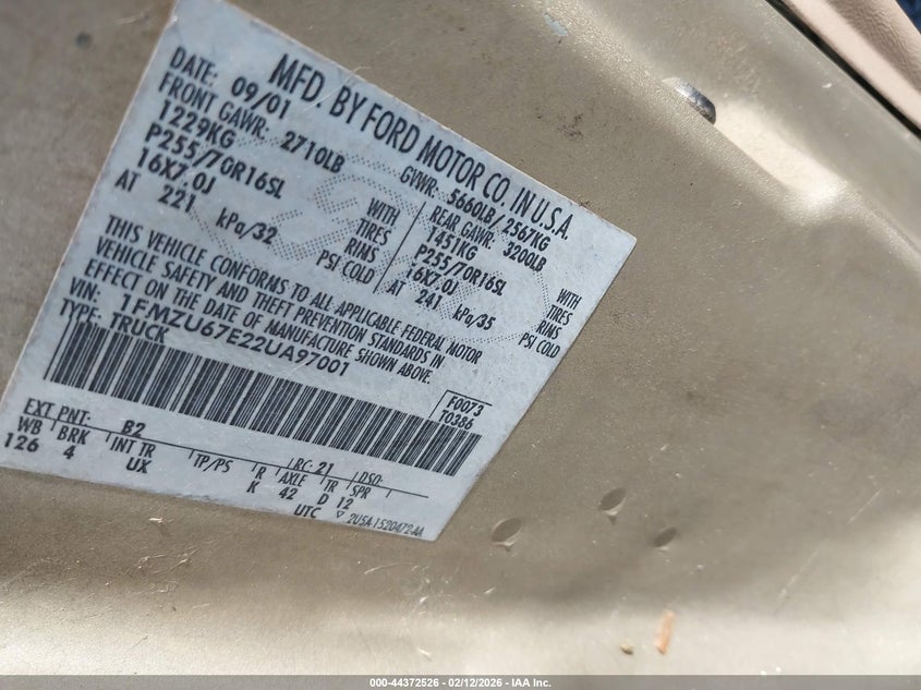 VIN: 1FMZU67E22UA97001