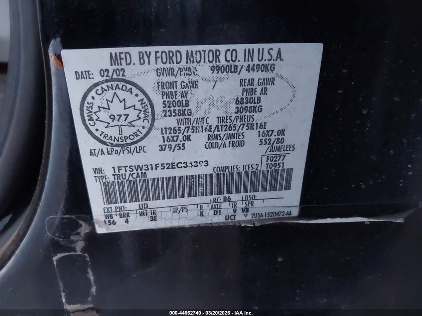VIN: 1FTSW31F52EC34393