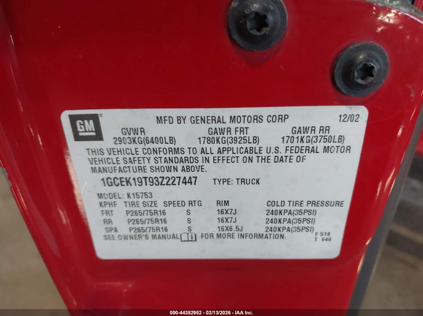 VIN: 1GCEK19T93Z227447