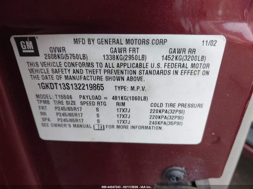 VIN: 1GKDT13S132219865