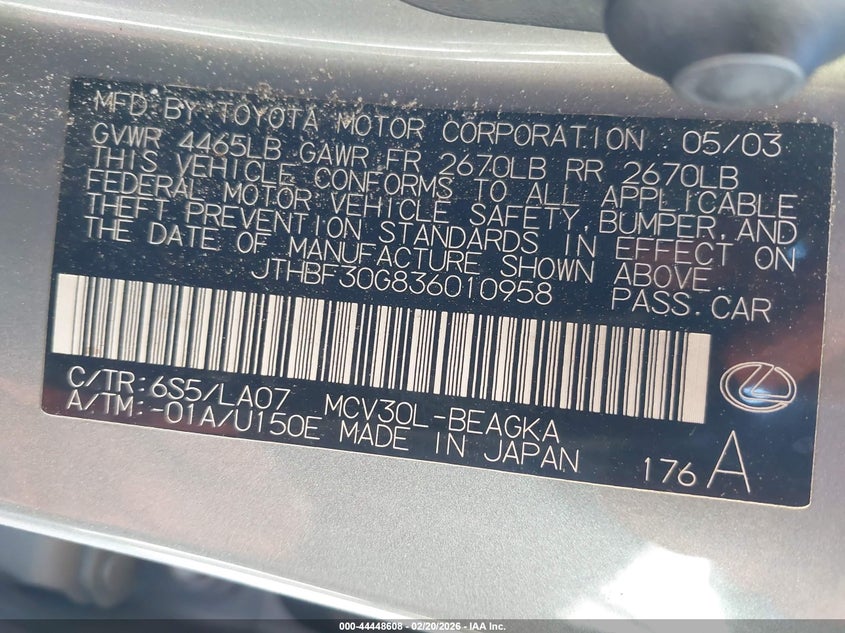 VIN: JTHBF30G836010958