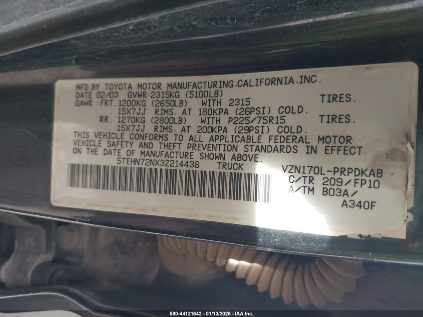 VIN: 5TEHN72NX3Z214438