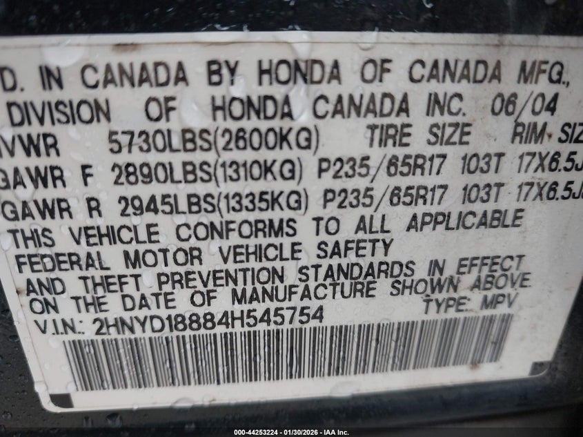 VIN: 2HNYD18884H545754
