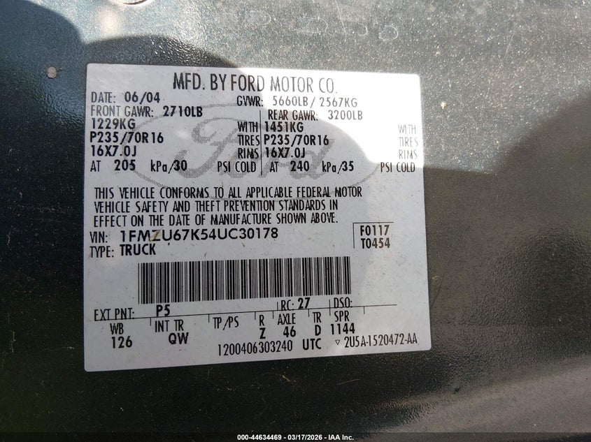 VIN: 1FMZU67K54UC30178