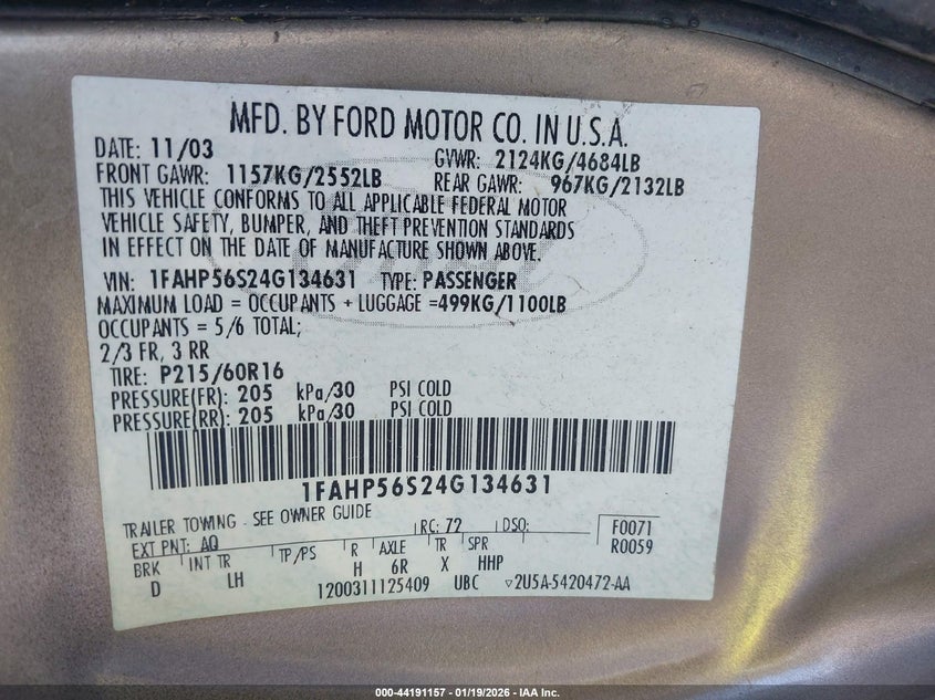VIN: 1FAHP56S24G134631