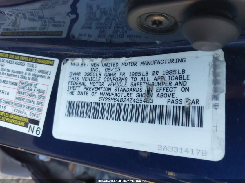| $325 | 2026-03-18 14:30:00 | ON APPROVAL | IAAI |