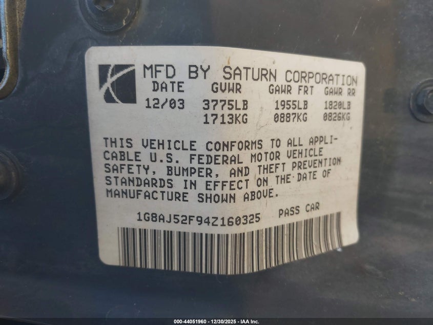 VIN: 1G8AJ52F94Z160325