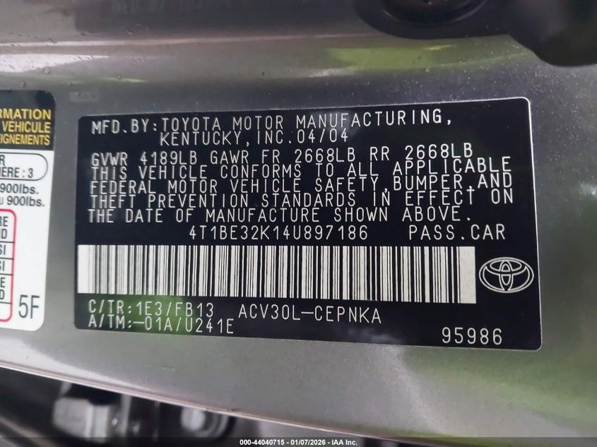 Variklio tipas:2.4L I-4 DOHC, VVT, 157HP