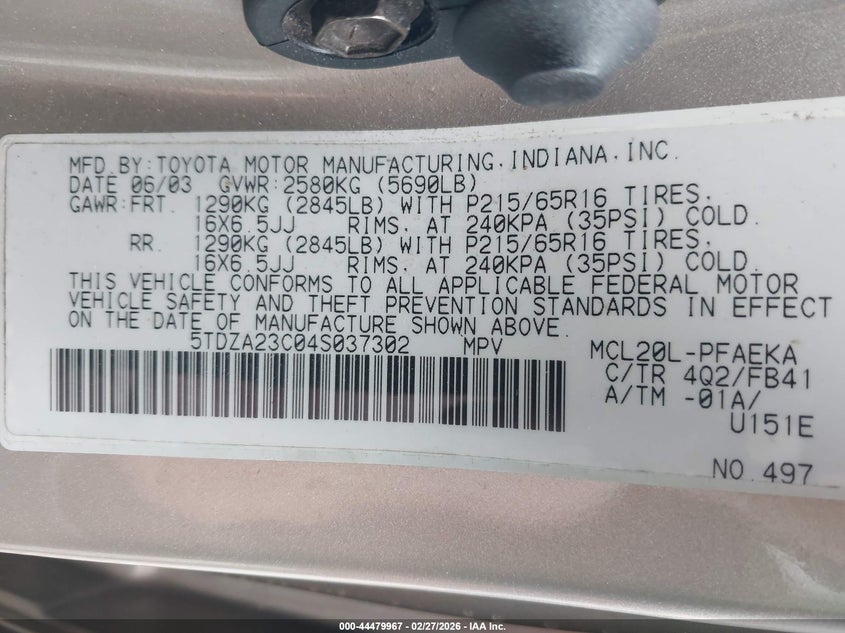 VIN: 5TDZA23C04S037302