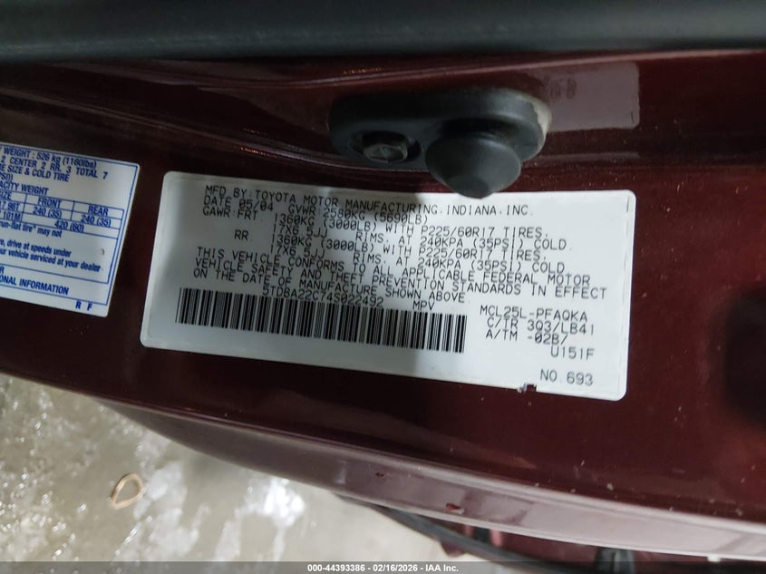 VIN: 5TDBA22C74S022492