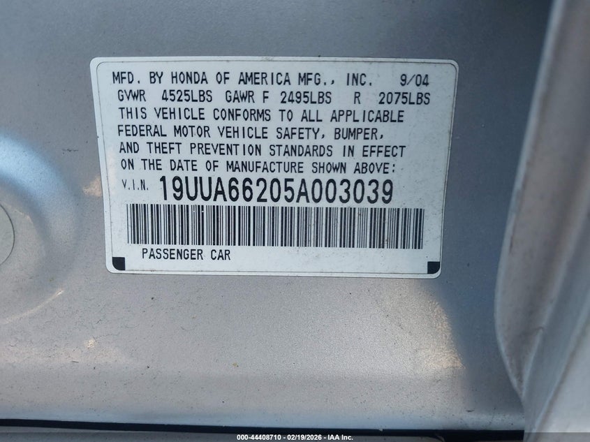 VIN: 19UUA66205A003039
