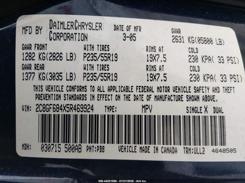 VIN: 2C8GF684X5R469924