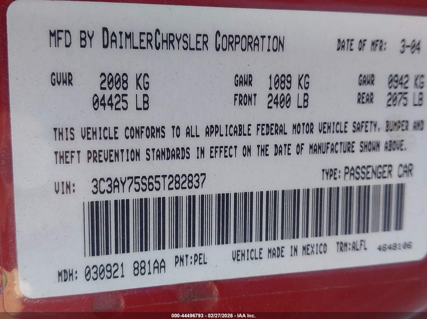 VIN: 3C3AY75S65T282837