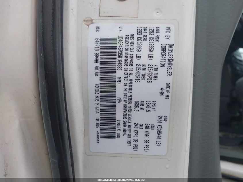 VIN: 1D4GP45R35B164995