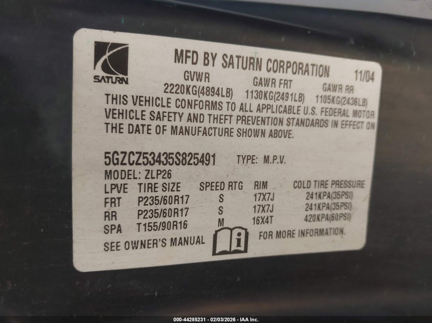 VIN: 5GZCZ53435S825491