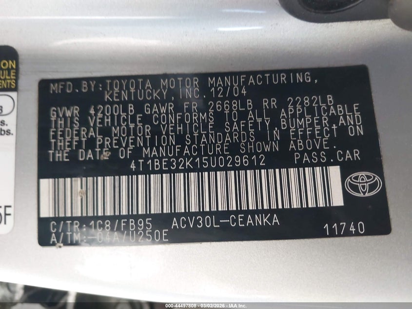 Variklio tipas:2.4L I-4 DOHC, VVT, 160HP