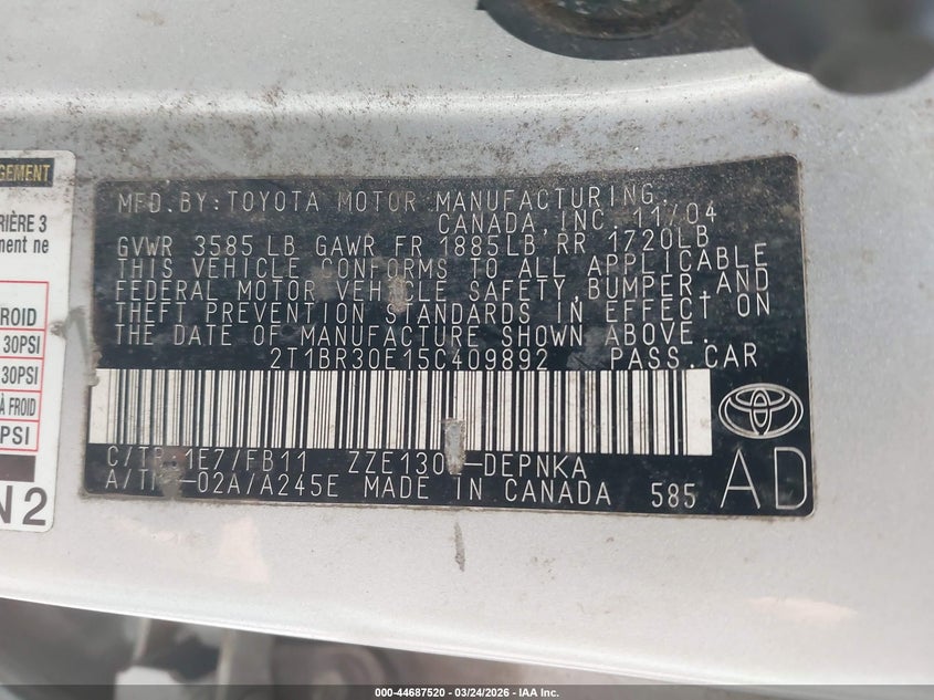 VIN: 2T1BR30E15C409892