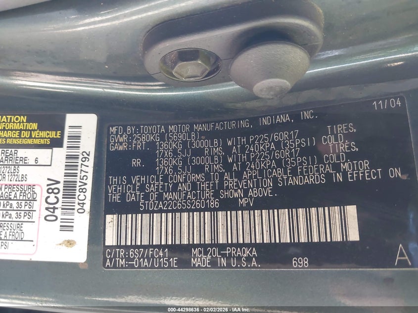 VIN: 5TDZA22C65S260186