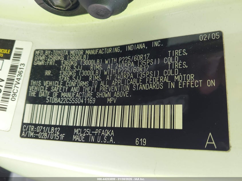 VIN: 5TDBA22C55S041169