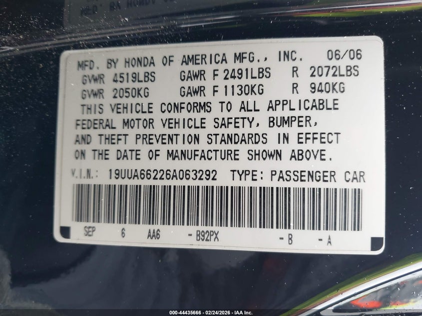 VIN: 19UUA66226A063292