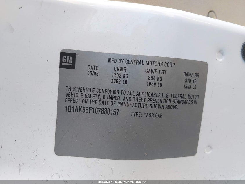 VIN: 1G1AK55F167880157