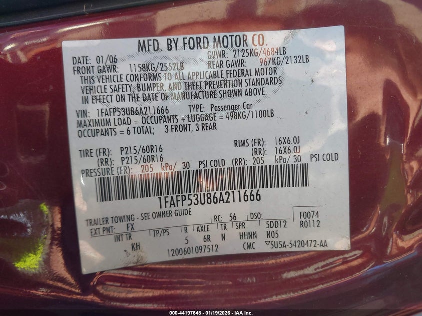 VIN: 1FAFP53U86A211666