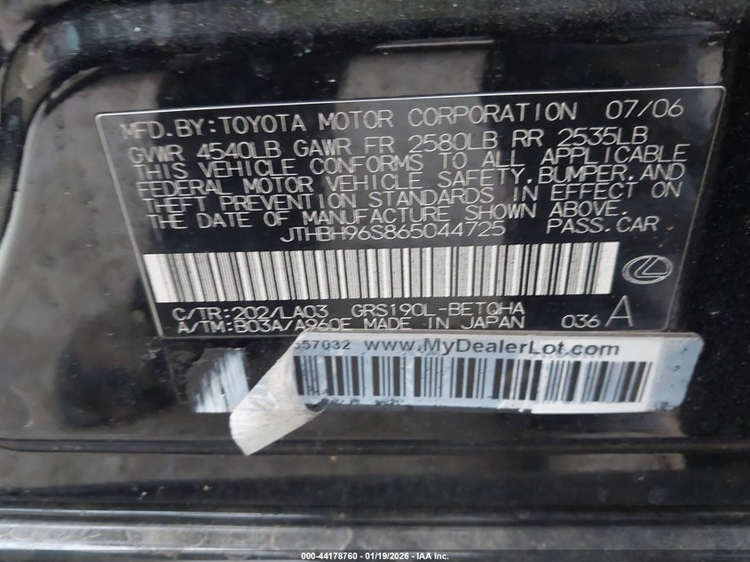 VIN: JTHBH96S865044725