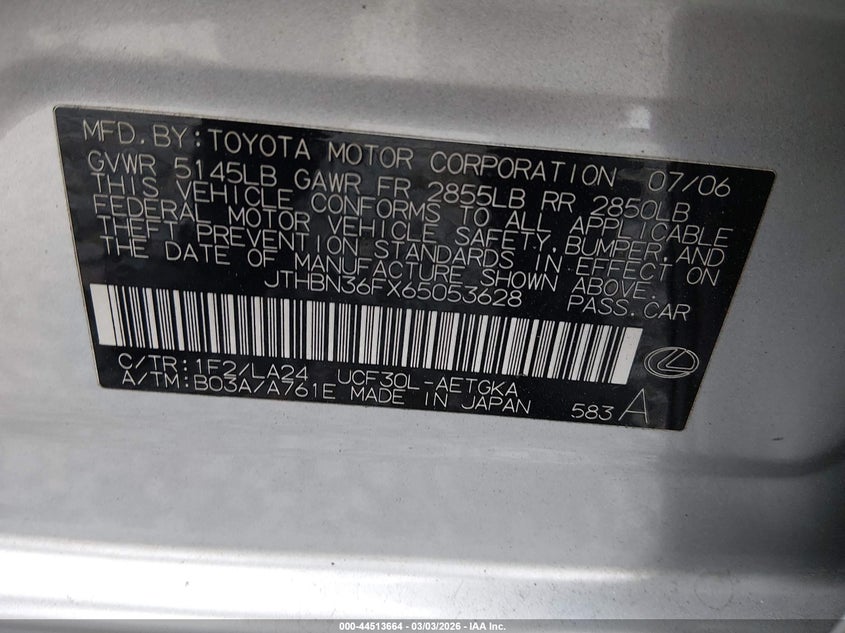 VIN: JTHBN36FX65053628