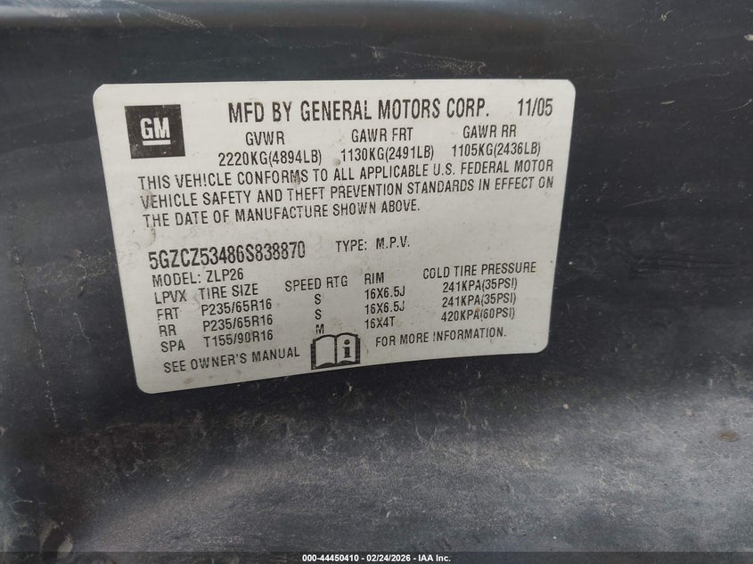 VIN: 5GZCZ53486S838870
