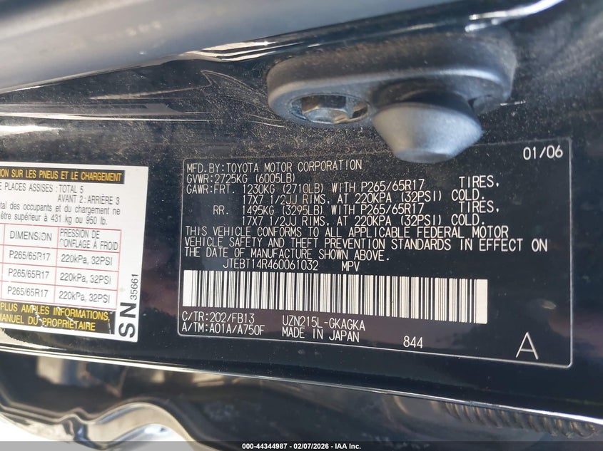 VIN: JTEBT14R460061032