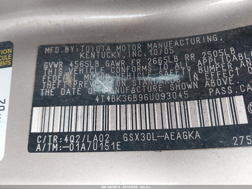VIN: 4T1BK36B96U093045