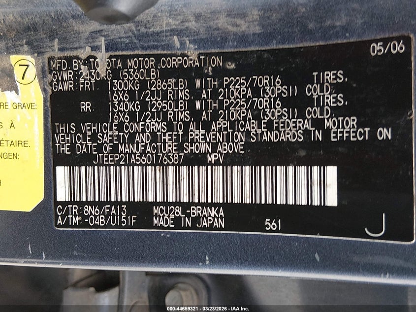 VIN: JTEEP21A560176387