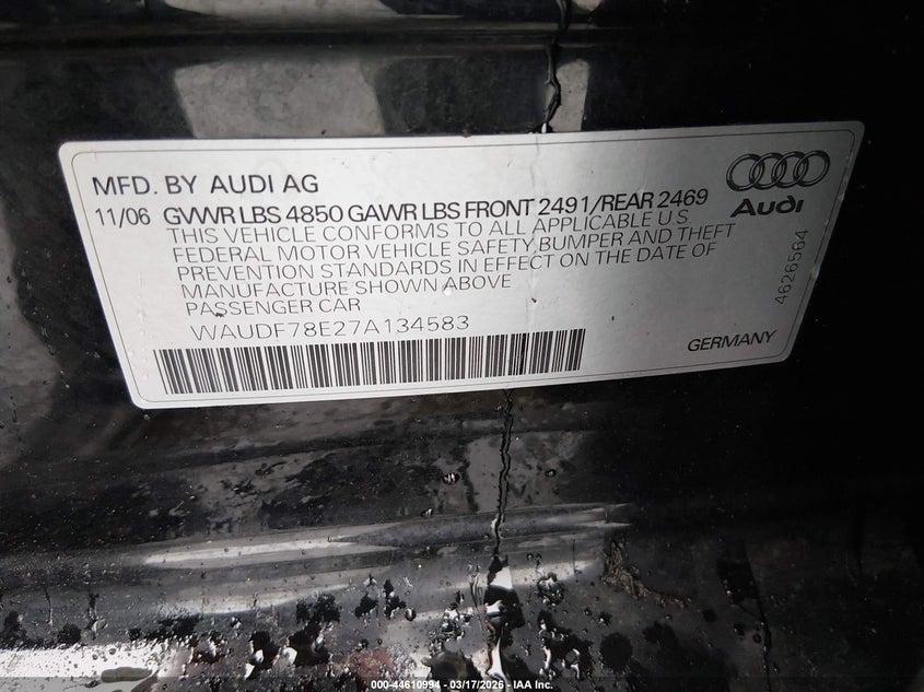 VIN: WAUDF78E27A134583