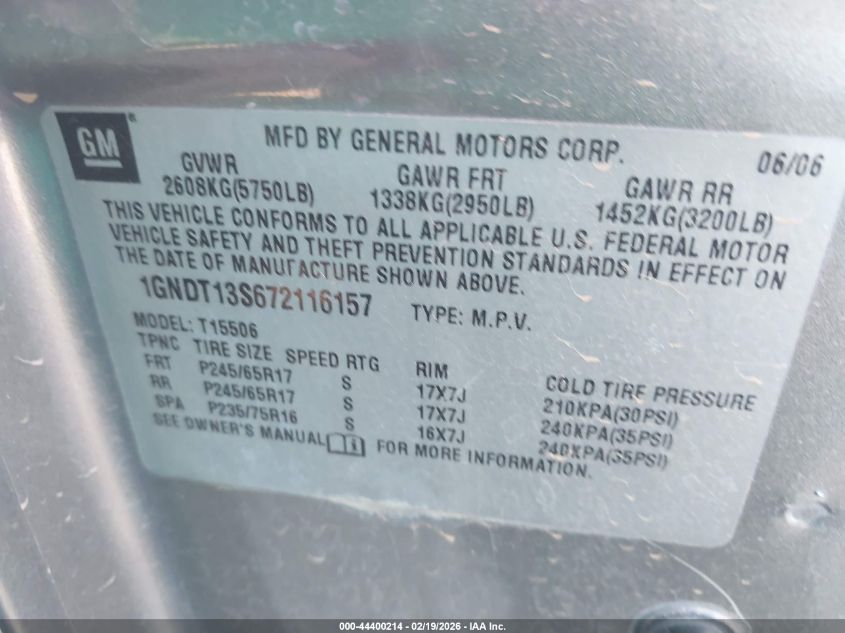 VIN: 1GNDT13S672116157