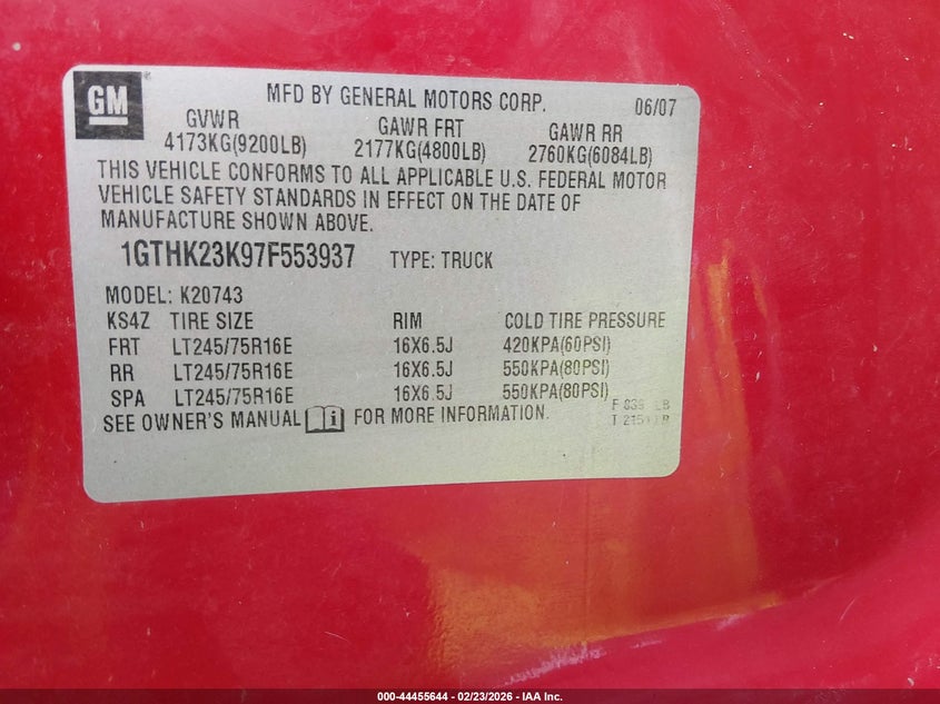 VIN: 1GTHK23K97F553937