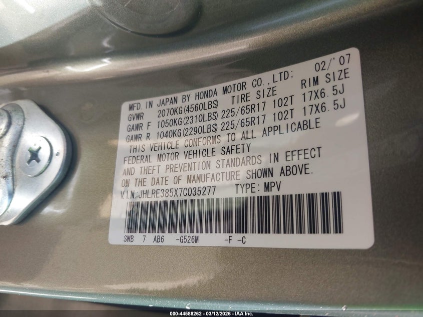 VIN: JHLRE385X7C035277
