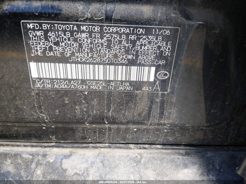 2007 LEXUS IS 250