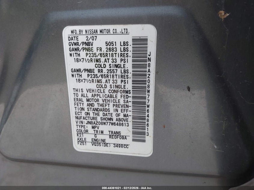 VIN: JN8AZ08W77W648613