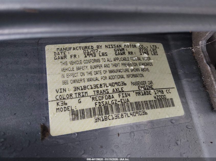 VIN: 3N1BC13E87L409036