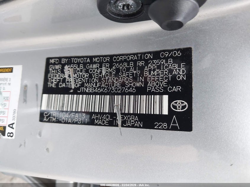 VIN: JTNBB46K673027646