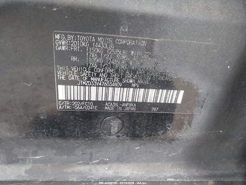 VIN: JTMZD33V476034809